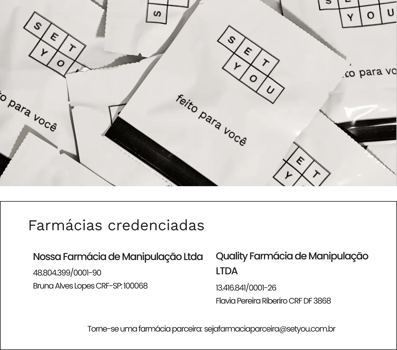 Todos produtos adquiridos são manipulados pelas farmácias credenciadas de acordo com as normas da Anvisa. A SetYou